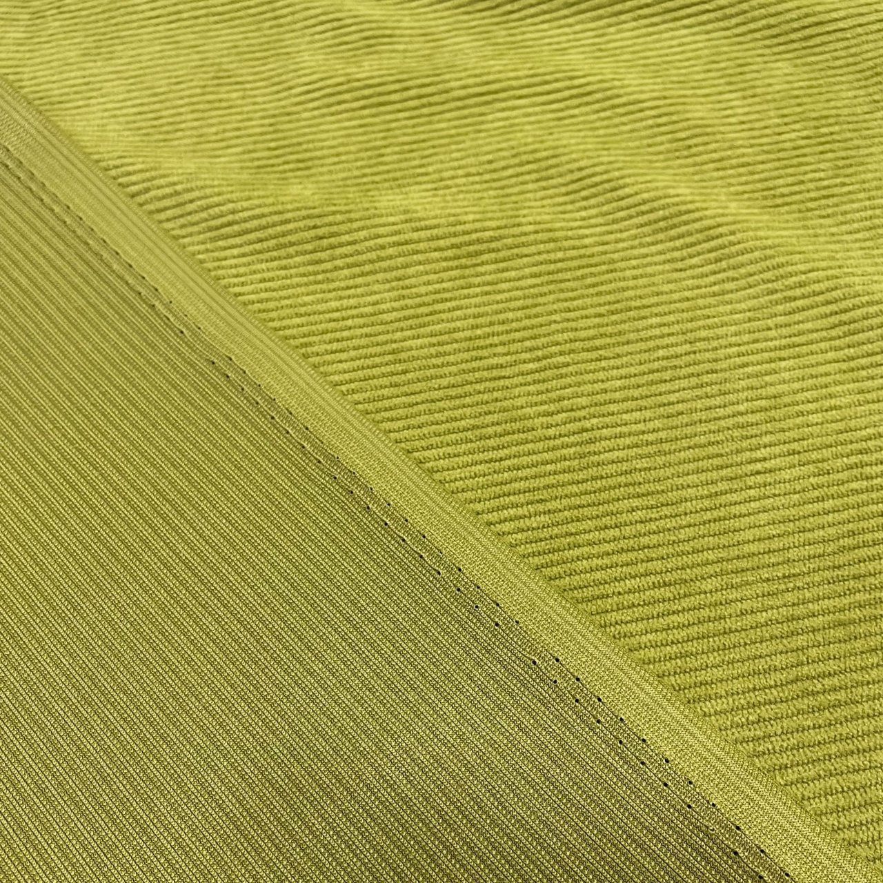 Плотный, и в то же время приятный материал с матовым блеском по лицевой стороне и нежной бархатистой поверхностью. На лицевой стороне классический ворс, создающий фактуру в полоску. Хорошая плотность ткани обеспечивает ее высокую износостойкость. Вещи из вельвета всегда актуальны, удобны в носке и не мнутся. Ткань прекрасно подходит для пошива свитшотов, платьев, юбок, а также спортивных костюмов.